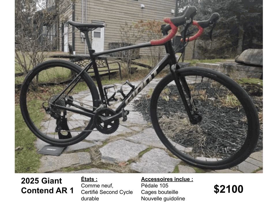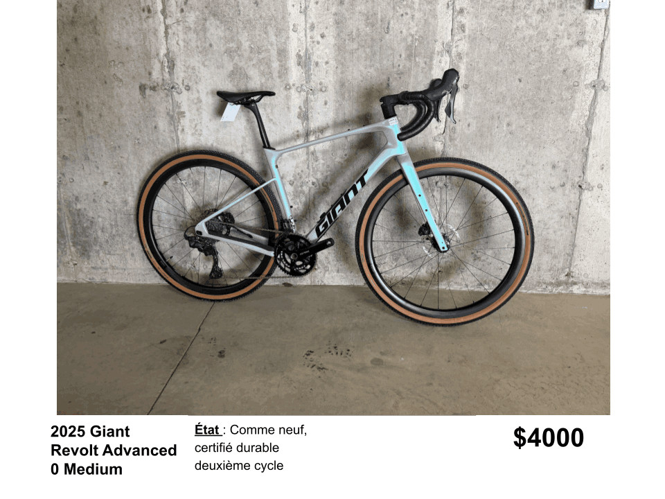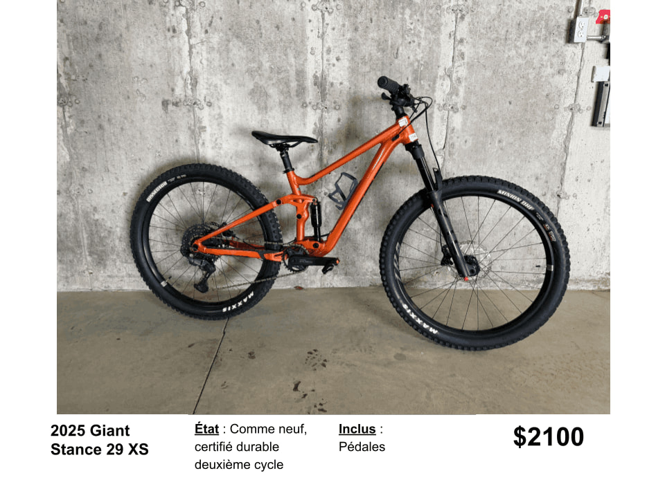 Les vélos présentés ci-dessous proviennent de notre programme Second Cycle. Les taxe sont incluses dans le prix affiché.